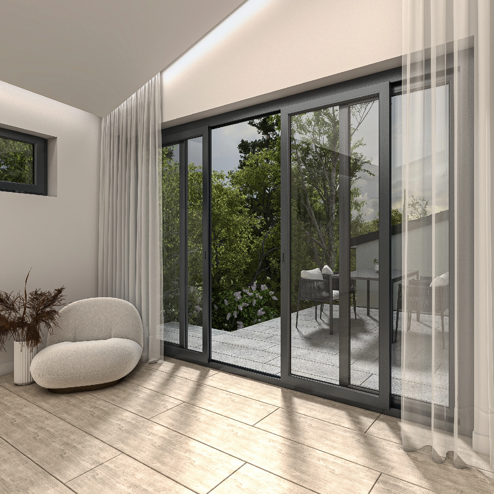 Ventanas abatibles y correderas en PVC o aluminio, diseñadas para un aislamiento térmico y acústico óptimo.