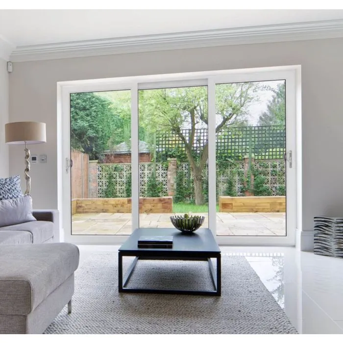 Puertas de PVC/aluminio con opciones de vidrio templado, ideales para patios, balcones y entradas.